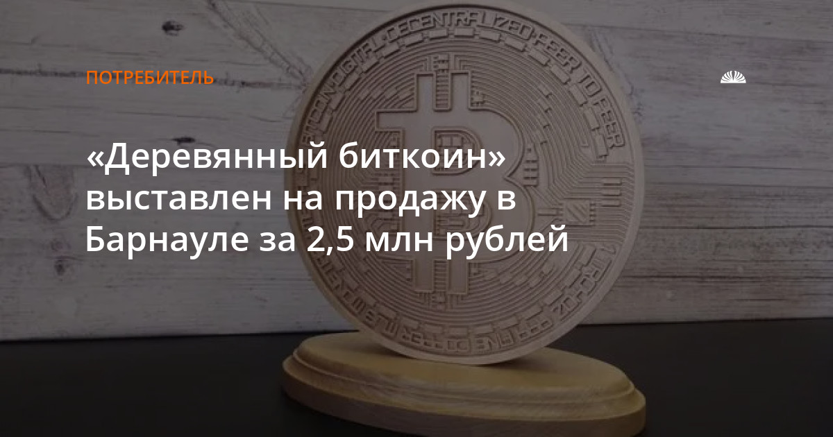 «Деревянный биткоин» выставлен на продажу в Барнауле за 2,5 млн рублей