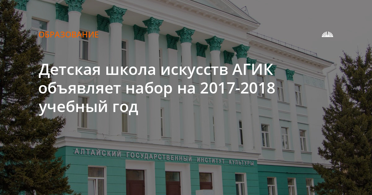 Алтайский государственный институт культуры более 40 лет готовит специалистов в области культуры и искусства. Институт осуществляет многоуровневую подготовку высококвалифицированных специалистов по программам бакалавриата, специалитета, магистратуры и аспирантуры, по программам дополнительного образования детей и взрослых; дополнительного профессионального образования. С 2015 г. осуществляет обучение детей по дополнительным предпрофессиональным программам в области искусства.