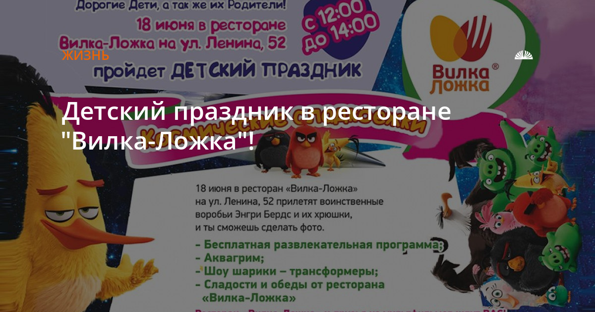 Ждем вас 18 июня в ресторане "Вилка-Ложка" по адресу пр. Ленина, 52 с 12.00 часов