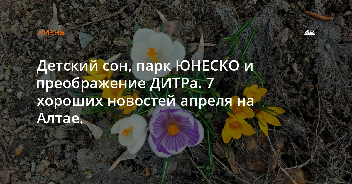 Детский сон, парк ЮНЕСКО и преображение ДИТРа. 7 хороших новостей апреля на Алтае.