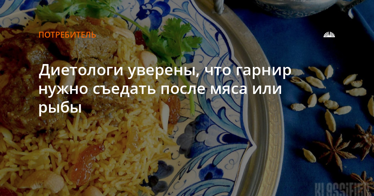 У тех, кто съедал гарнир спустя 15 минут после употребления в пищу рыбы или мяса, уровень глюкозы в крови был ниже на 30% или 40% соответственно, чем у тех, кто предпочел начать прием пищи с риса.