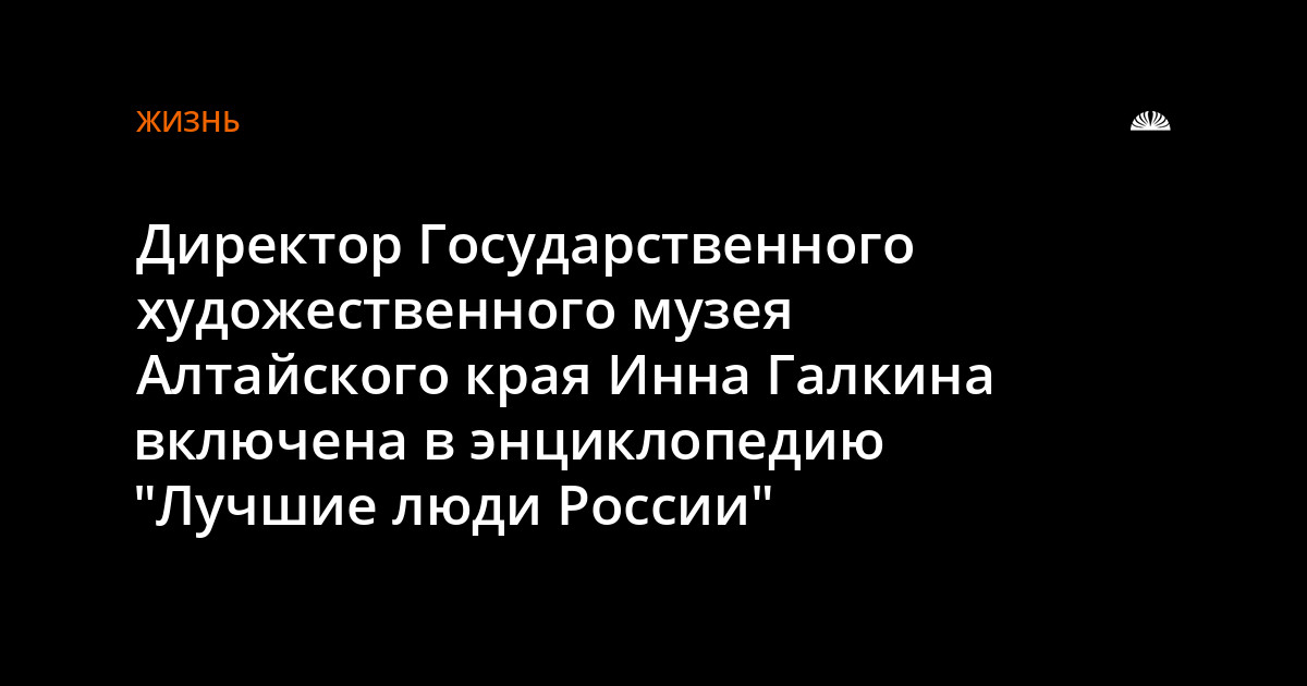По рекомендации управления Алтайского края по культуре и архивному делу имя директора Государственного художественного музея, заслуженного работника культуры Инны Константиновны Галкиной будет внесено в рубрику "Родины славные сыны и дочери". В этом году стартует новый международный проект "Лучшие люди", в рамках которого выходит энциклопедия "Лучшие люди России" - 2011. Инна Константиновна Галкина более 20 лет руководит научно-исследовательской работой музея, составитель и редактор научных сборников, книги "Искусство Алтая в собрании музея". Инна Константиновна – один из авторитетных исследователей творчества Г.И. Гуркина и первых художников Алтая. Она внесла огромный вклад во все сферы деятельности музея, а в период её руководства музей вышел на новый уровень работы и стал культурным центром Алтайского края. В последние годы удалось реализовать несколько масштабных проектов совместно с Государственным Русским музеем, Государственной Третьяковской галереей, Государственным историко-культурным заповедником "Московский Кремль". Справка Энциклопедия "Лучшие люди России" выпускается московским издательством "Спец-Адрес". Список ее участников формируется Экспертным советом на основе рекомендаций органов исполнительной и законодательной власти регионов России.