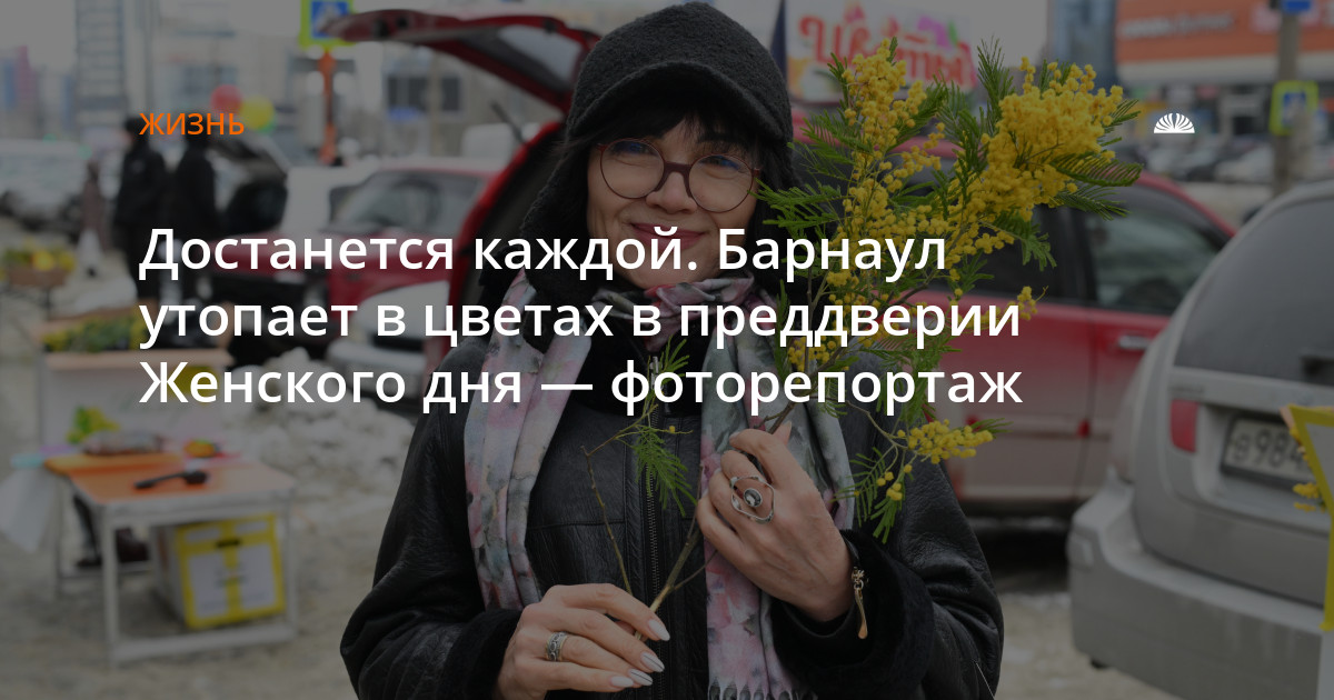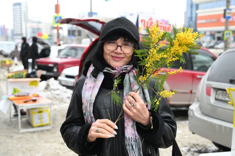 Несмотря на лужи и растаявший снег, у барнаульцев приподнятое настроение. Многие держат в руках мимозы, тюльпаны, которые они купили сами или вместе с родными.