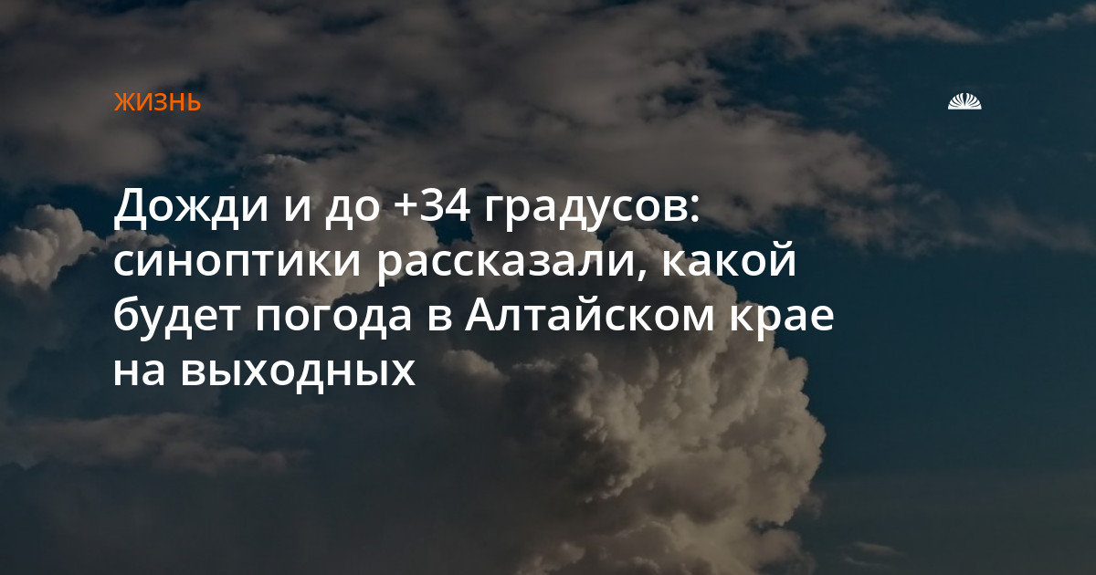 В Алтайском крае на выходных, 11 и 12 августа, будет тепло и дождливо. В отдельных районах возможен град, сообщает алтайский ЦГМС.