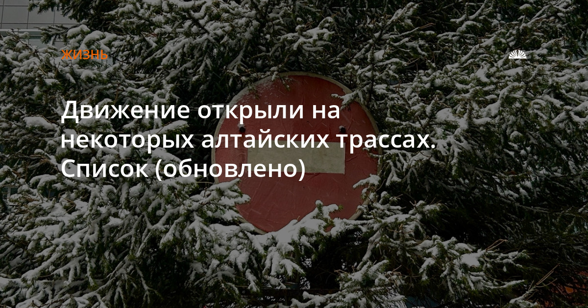 Движение на всех трассах Алтайского края открыто, сообщает пресс-служба министерства транспорта региона.