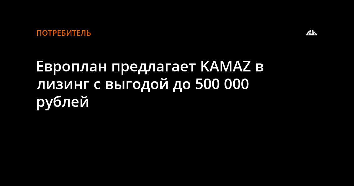 *Платеж 45 515 руб./мес.: Аванс 46% от цены техники, срок лизинга 60 месяцев. Расчёты приведены для техники KAMAZ 65115 стоимостью 3 988 400 руб. Платеж 51 115 руб./мес.: Аванс 46% от цены техники, срок лизинга 60 месяцев. Расчёты приведены для техники KAMAZ 5490 стоимостью 4 473 380 руб. Платеж 68 290 руб./мес.: Аванс 46% от цены техники, срок лизинга 60 месяцев. Расчёты приведены для техники KAMAZ 6520-6014-49(B5) стоимостью 5 078 720 руб. Все расчёты приведены в рублях, с выкупным платежом 3% от цены техники. По договорам лизинга взимается единовременная комиссия 20 000 руб. Условия действительны на 25.05.2018 для юридических лиц и ИП на приобретение новой техники в лизинг. Выгода по акции 398 840 руб./447 338 руб./507 872 руб.: выгода достигается за счет суммирования предложений: 1) льготный лизинг Европлана (Уменьшение стоимости услуг финансовой аренды в размере 10% от стоимости техники по ДКП без НДС, акция распространяется на грузовые а/м и спецтехнику, имеющие ПТС, с условиями ДФА: аванс от 15%, срок 47-60 месяцев, аннуитетные платежи), 2) спецусловия лизинга по программе KAMAZ Finance, 3) низкий тариф по страхованию (Тариф действителен для клиентов, приобретающих грузовые а/м КАМАЗ в лизинг в Европлане. Акция разработана в рамках сотрудничества Европлана, KAMAZ и страховой компании "ВСК" до 30.06.2018 г. Страховая программа с тарифом 1,48% включает франшизу 30 000 руб. Доступно также страхование без франшизы с тарифом 1,6%). Условия действительны на 20.05.2018. Предложение действительно для юридических лиц и ИП на приобретение новой техники в лизинг. Обращаем ваше внимание на то, что данное предложение носит исключительно информационный характер и ни при каких условиях не является публичной офертой, определяемой положениями Ст. 437 (2) ГК РФ. АО "ЛК "Европлан", ОГРН 1177746637584. ЕВРОПЛАН®