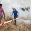 Участники прошли дистанцию в 2,5 километра. Маршрут был непростым: спуски и подъемы в гору, "размытый дождем" участок, "задымленное" место… По пути спортсменов было девять станций с дополнительными заданиями: проползти под низко натянутой сеткой, попасть мячом в мишень, перенести в назначенную точку огромные автопокрышки и т.д.