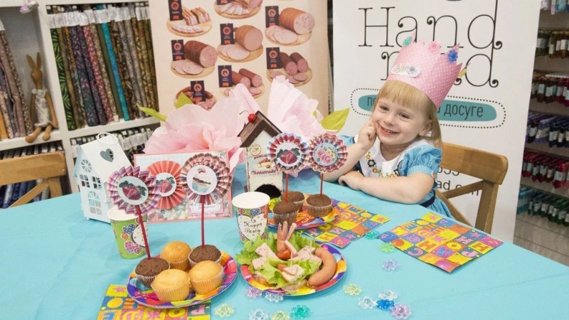 Семья Михайловых украшала стол в тематике детского праздника. Своими руками в технике "скрапбукинг" мама Мария и дочка Варя изготовили кейк-топперы для кексов, корону для принцессы и праздничную открытку. Из съестного на столе Михайловых были красивые розочки из колбасы и канапе.