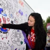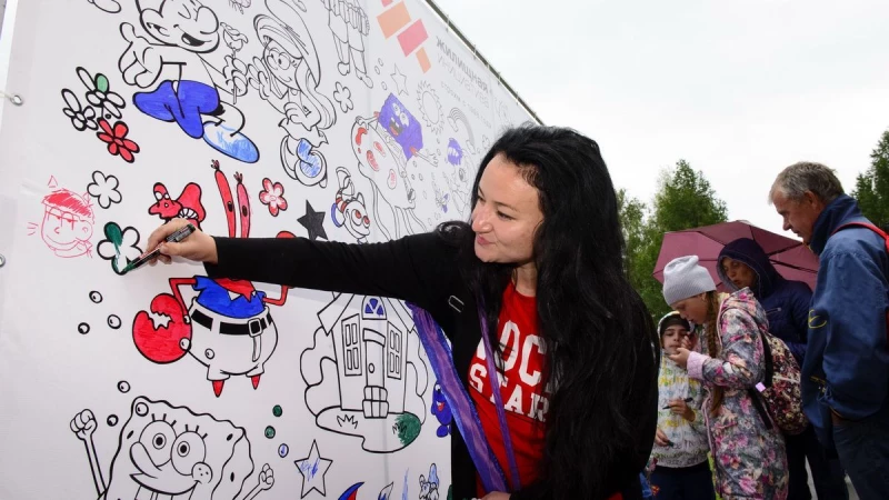 Представители застройщика предлагали всем желающим показать свои художественные способности. На площадке "ЖИ" можно было как создать собственное произведение, так и поучаствовать в коллективном творчестве: раскрасить огромный баннер с персонажами и сюжетами из известных мультиков.