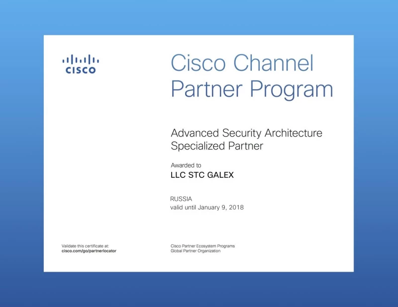 "НТЦ Галэкс" имеет большой опыт по внедрению решений Cisco, лидера мировой индустрии сетевых технологий, и с 2006 года является обладателем статуса премьер-партнера. За время сотрудничества компания "НТЦ Галэкс" несколько раз была удостоена звания "Лучший премьер-партнер Cisco в Сибирском федеральном округе".