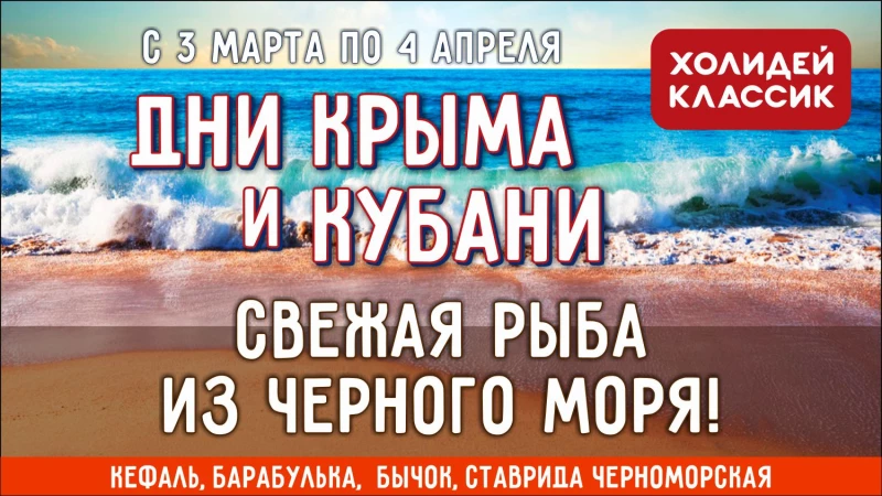 Акция "Дни Крыма и Кубани" будет проходить с 3 марта по 4 апреля в большинстве крупных супермаркетов сети "Холидей Классик".