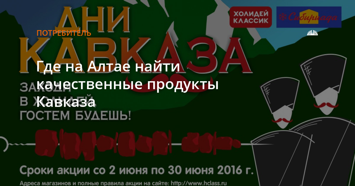 Но можно ли закатить настоящий пир по-кавказски в паре тысяч километров от знаменитых гор, здесь – в Сибири, в Алтайском крае? Оказывается, можно. Более того, сейчас это сделать как никогда просто и удобно, ведь все необходимое можно приобрести в одном месте. Дело в том, что целый месяц в супермаркетах "Холидей Классик" и Сибириада проходят Дни Кавказа. Весь июнь покупателей ждет расширенный ассортимент товаров, с которыми легко устроить дома хор вкусных и разнообразных блюд.