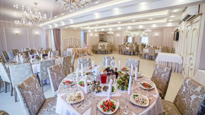 Для гостей — два светлых зала на 60 и 100 персон, с отдельными двориками и шатрами, летняя веранда, закрытая охраняемая территория, бесплатная парковка, гостиница с номером для молодоженов. А также прекрасная кухня с гриль-меню, блюдами горячего копчения и тортами собственного изготовления.