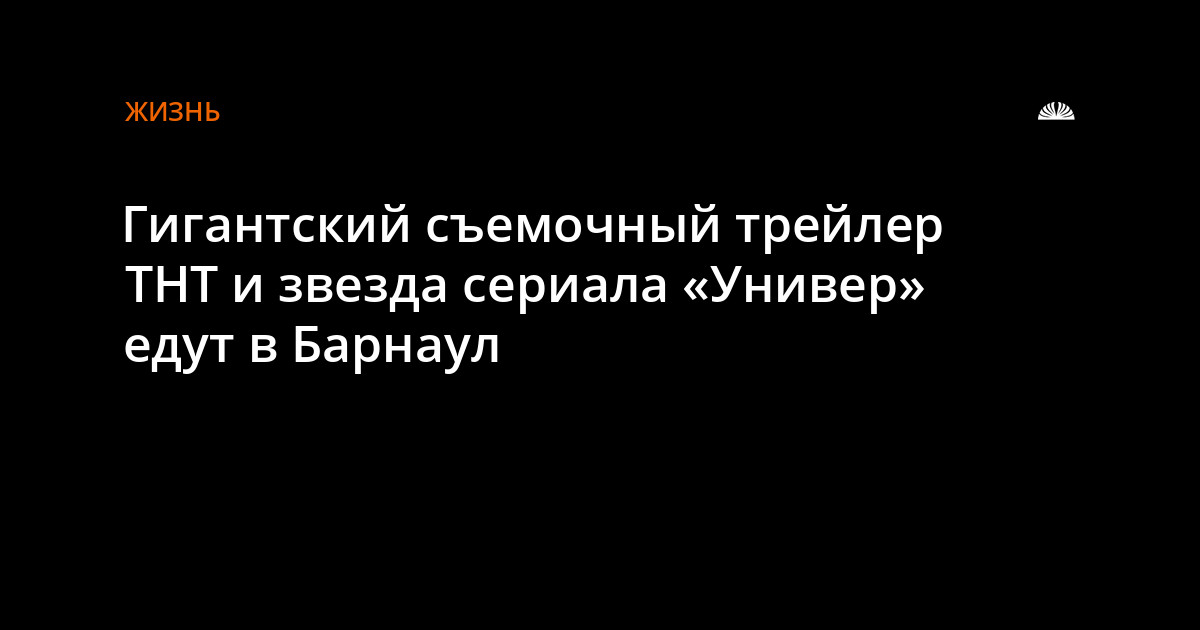 В большой тур по городам России отправилась гигантский трейлер-студия телеканала ТНТ. Уже 2 сентября она приедет в Барнаул и на один день у театра Драмы им. В.М.Шукшина развернется большая съёмочная площадка передвижной студии телеканала. Там будут все, как в настоящих телевизионных и киносъемках: гримерка, съемочный павильон, монтажная студия, команда профи: от визажиста до режиссера и продюсера, а также знаменитые золотые кубы ТНТ!
