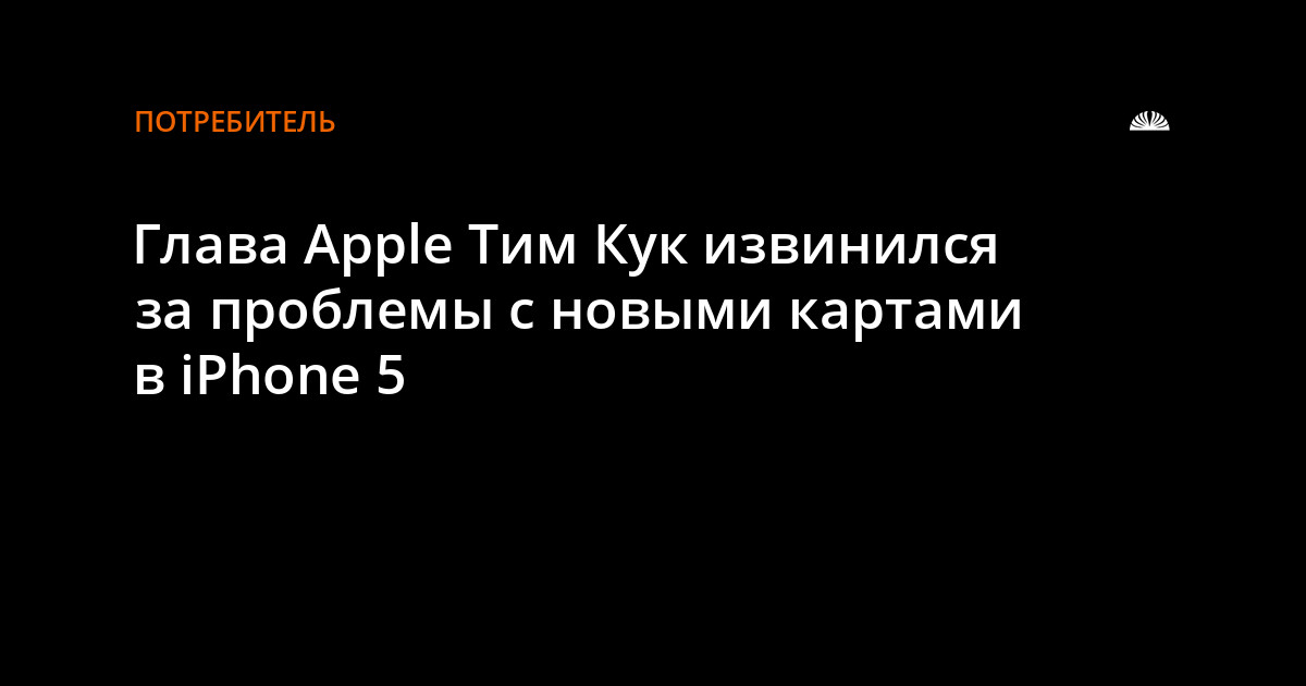 Генеральный директор корпорации Apple Тим Кук принес извинения за возникшие у пользователей проблемы с картами в новом смартфоне iPhone. Глава компании отметил, что сильно сожалеет из-за доставленных неудобств.