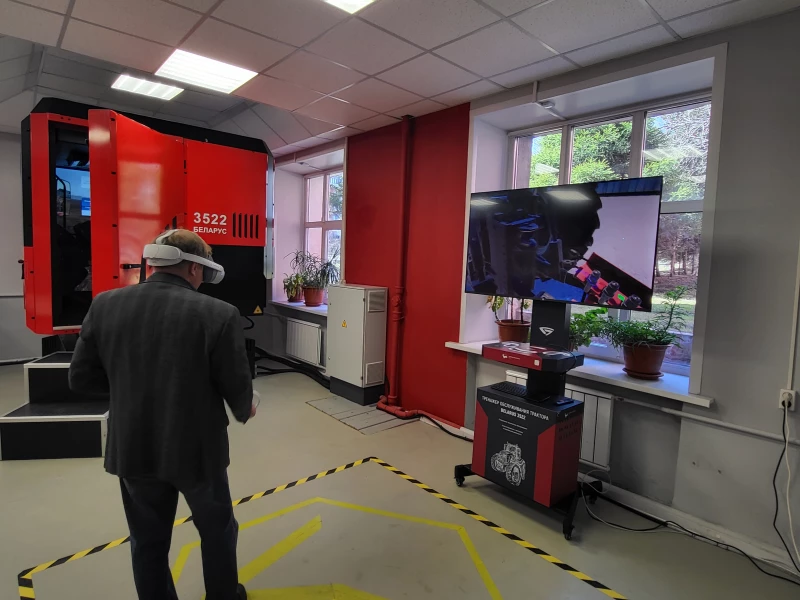 Также на площадке работает VR-станция. С помощью шлема виртуальной реальности школьники могут освоить приемы технического обслуживания тракторов МТЗ.