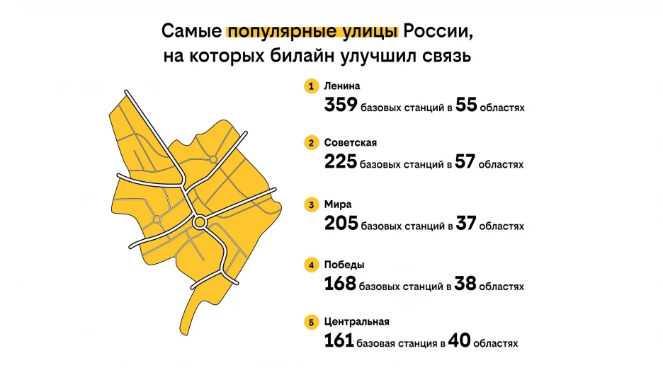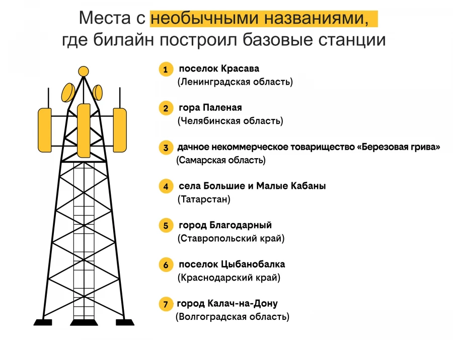Стройка проходила в городах-миллиониках, а также в деревнях. В 2021 году из общего числа населенных пунктов, в которых проводились работы по строительству и модернизации оборудования, 70% - областные города и поселки с населением менее 10 тысяч человек. Вот тут и скрывается все многообразие названий.