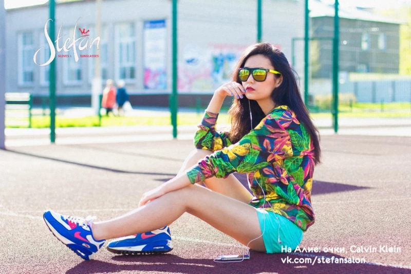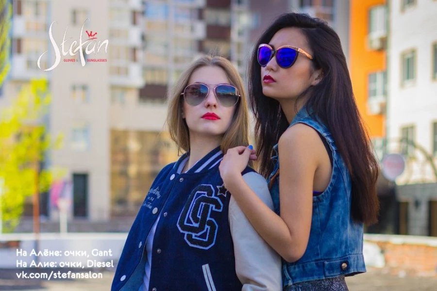 Во-первых, солнцезащитные очки защищают от вредных лучей ультрафиолета, во-вторых — это аккорд, завершающий любой образ. Вот как раз проект о городских образах мы и задумали. Воплощали вместе с фотографом Димитъром Тодоровым и моделями Аленой Зубовой и Алиёй Мурумбаевой. Выбрали фактурные виды: геометрию моста, баскетбольную площадку, дворы многоэтажных домов, интерьеры салонов Stefan и торгового центра "Проспект"