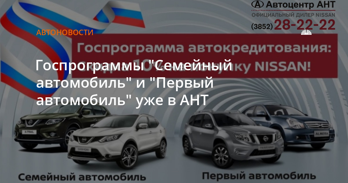 Автоцентр АНТ, официальный дилер NISSAN, объявляет о старте программ "Семейный автомобиль" и "Первый автомобиль"!