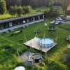 В инфраструктуру входят два готовых гостевых номера, баня-бочка с чаней на шесть человек, помещение для персонала и склад. База отдыха работает круглый год и имеет все необходимые коммуникации, включая собственную скважину и септики.
