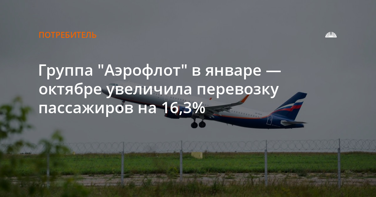 В октябре 2017 года Группа "Аэрофлот" перевезла 4,3 млн пассажиров, что на 12,1% превышает результат за октябрь 2016 года. Количество перевезенных пассажиров авиакомпанией "Аэрофлот" в октябре 2017 года составило 2,9 млн человек, увеличившись на 11,9% по сравнению с аналогичным периодом прошлого года.