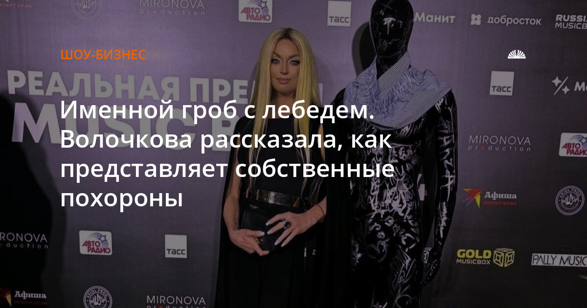 «Я хочу, чтобы гроб был белого цвета. Чтобы на нем золотой патиной было написано "Анастасия Волочкова" и был мой логототип - лебедь. Белые розы. Похороните меня в пуантах, не трогайте мое тело» — высказалась она в интервью цифровому психологу Вере Ганеевой.