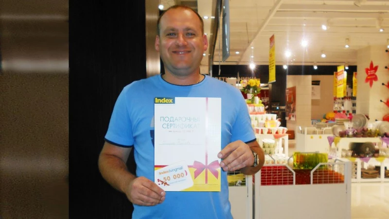 В течение всего июня посетители магазина делали фото со своей мамой в интерьерах Index living mall, и в минувшую пятницу с помощью генератора случайных чисел был определён счастливый обладатель сертификата – Денис Семичев. Примечательно, что Денис отправил селфи в последний день конкурса и оказался победителем! На заметку всем, кто не верит в чудо.