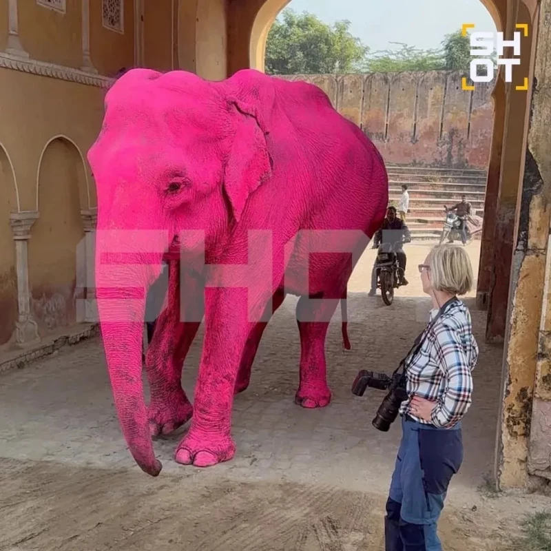 Скандал вспыхнул в «розовом» Джайпуре — городе с архитектурой из камня такого оттенка. Российский фотограф задумала концептуальную съемку — розовый слон с натурщицей в той же гамме на спине.
