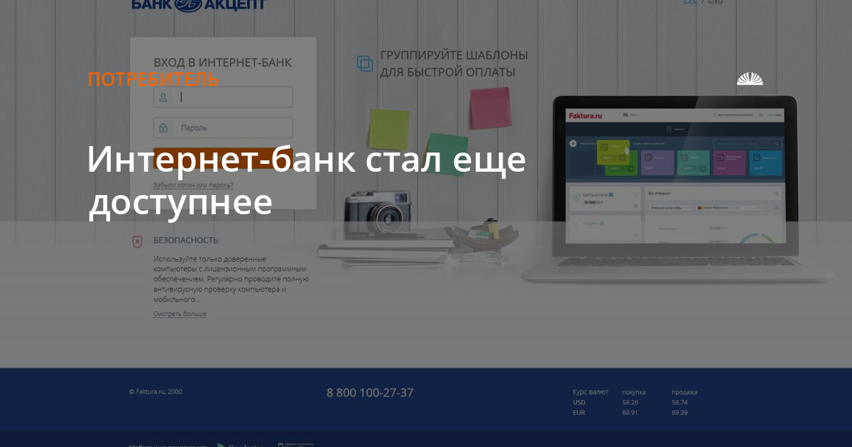 Настройте простой, удобный и, главное, онлайн инструмент для управления картой - подключите Интернет-банк в 3 клика в любом банкомате Банка Акцепт!