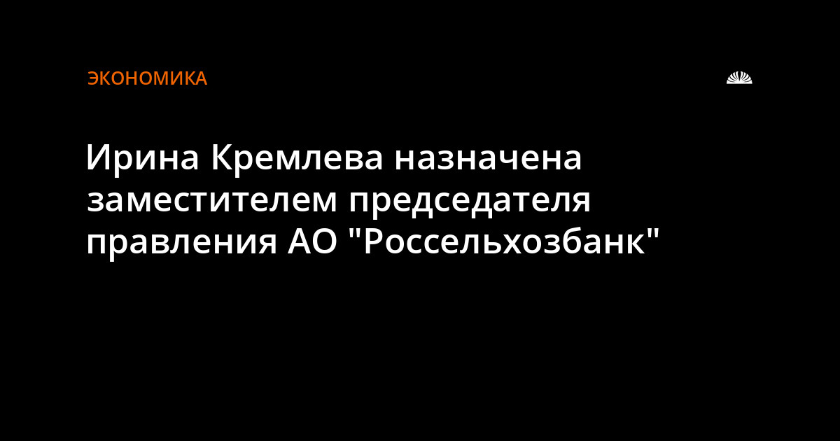 В АО "Россельхозбанк" Ирина Кремлева будет курировать работу Департамента поддержки корпоративного бизнеса, Департамента рисков, Департамента оформления и контроля кредитных операций, Департамента залогового обеспечения.