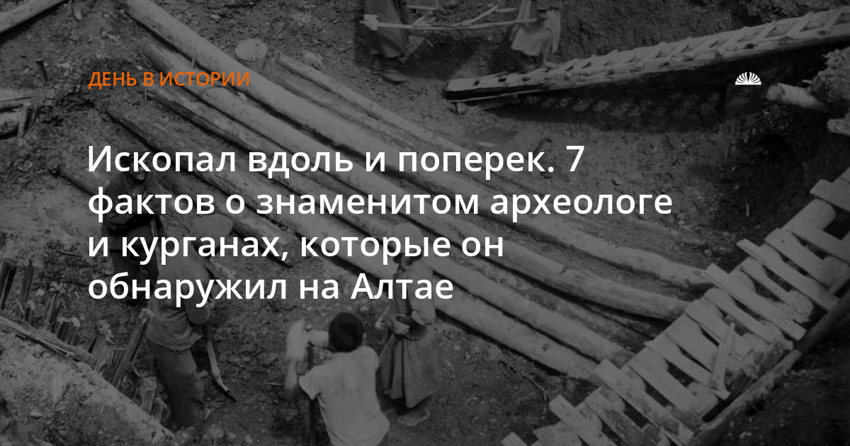 4. Михаил Грязнов руководил алтайской экспедицией Государственного Эрмитажа — она исследовала Горный Алтай в долинах реки Чарыш, Кан, Ябоган и Кырлык в 1939 году. В результате раскопок на могильном поле в Яконуре вскрыли 17 погребений.