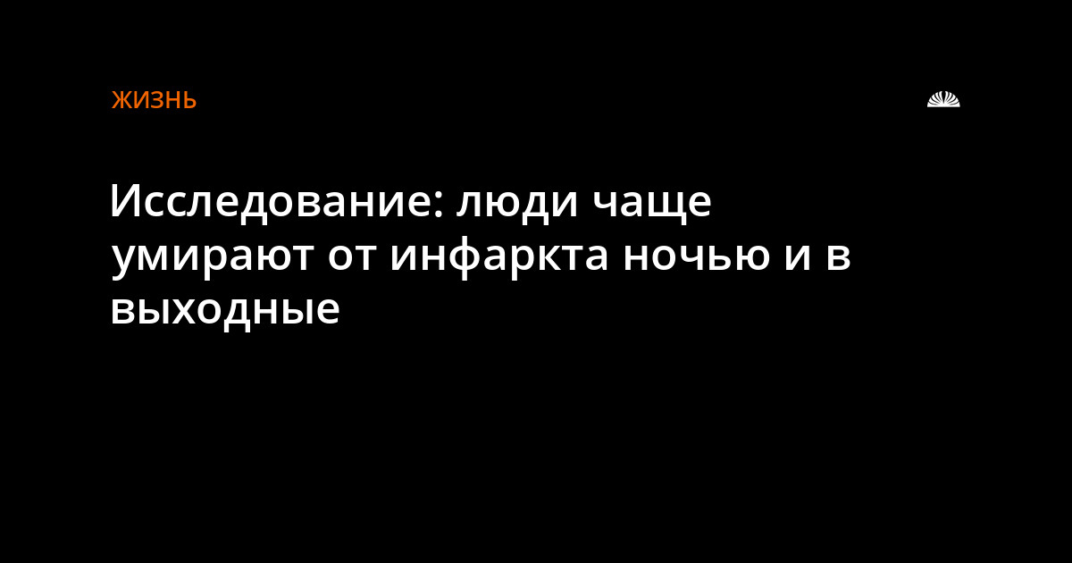 Люди чаще умирают от инфаркта ночью и в выходные, выяснили британские ученые, статья которых опубликована в научном журнале BMJ. К такому выводу они пришли, проанализировав результаты 48 исследований, в которых, в общей сложности, участвовали 1896859 человек.