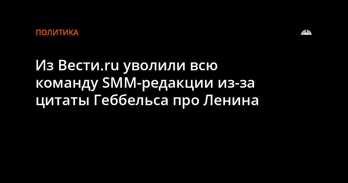 К 90-летию Владимира Ленина в группе ВГТРК в "Фейсбуке" SMM-продвиженцы опубликовали подборку "Высказываний великих о Ленине", в которой в том числе была и цитата из Геббельса: "Среди этих людей самым великим был Ленин. Он хотел указать путь этому народу. Для этого народа он стал всем". После критики в блогосфере цитата нациста была удалена, а вместе с ней, получается, "удалили" и всю SMM-команду.