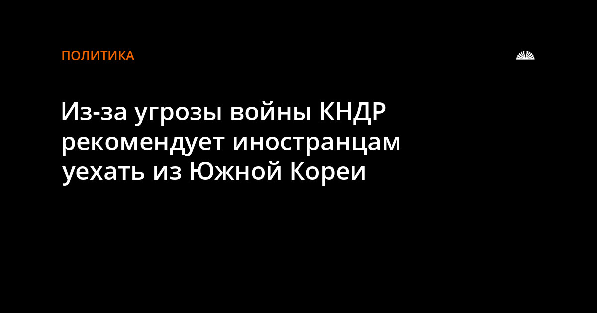 КНДР рекомендует иностранцам покинуть Южную Корею из-за угрозы войны, сообщает РСН со ссылкой на зарубежные СМИ. Центральное телеграфное агентство Кореи также призывает "все международные организации, компании и туристов проработать меры для эвакуации". В ближайшее время КНДР может запустить баллистическую ракету в ответ на совместные военные учения США и Южной Кореи.