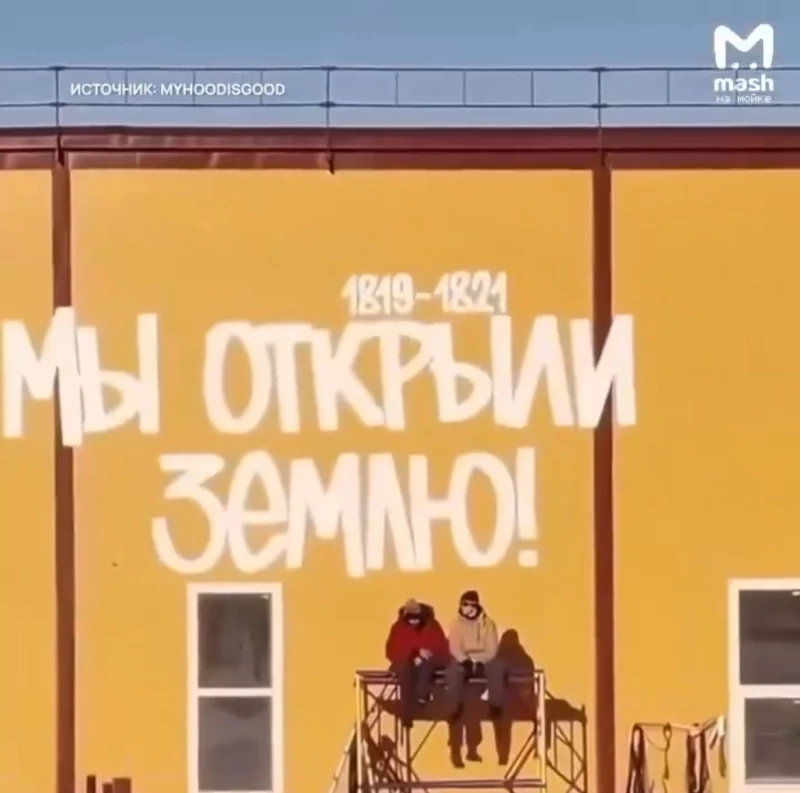 Антарктида оказалась сложной средой — разреженный воздух, замкнутый цикл ветров и резкие перепады погоды не давали художникам расслабиться. К счастью, в первые недели над станцией «Прогресс» стояла ясная погода, солнце прогревало фасад, и краска ложилась на стену ровно.