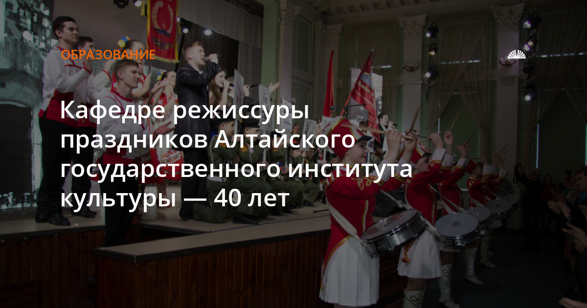 Одним из первых достижений кафедры стало создание агиттеатра, который стал Лауреатом премии Ленинского комсомола Алтая. Продолжил историю кафедры Леонид Федорович Черкашенинов, который более 20 лет занимается режиссурой масштабных городских праздников на главных площадках города Барнаула, организацией исторических публицистических реконструкций, а также многих молодежных и спортивных мероприятий городах и районных центрах Алтайского края. Современные традиции кафедры режиссуры праздников поддерживают молодые педагоги Татьяна Костина и Наталья Барабанова, за плечами которых опыт проведения масштабных мероприятий различного уровня.
