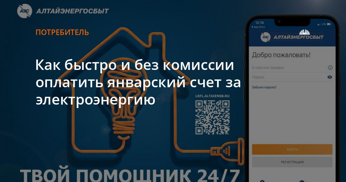 Квитанция за электроэнергию скоро будет доступна в онлайн-сервисах «Алтайэнергосбыт». Не забудьте оплатить начисления за январь до 10 февраля включительно.
