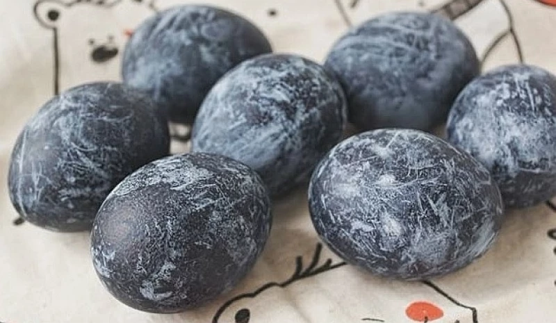 - В чайнике вскипятить воду. Кипяток влить к каркаде. Добавить столовый уксус. Перемешать. В заваренный чай опустить вареные яйца. Оставить на три-шесть часов. В зависимости от времени настаивания интенсивность цвета может быть разной.