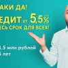 Например, кредит под 5,5% годовых могут оформить как клиенты с положительной кредитной историей, участники зарплатных проектов, пенсионеры, так и новые клиенты Банка «Левобережный». Срок кредита – от полугода до 5 лет. Денежные средства можно использовать на любые цели.