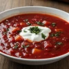 - Когда борщ почти готов, попробовать его на соль и кислоту, добавить еще немного сахара или соли, если нужно.