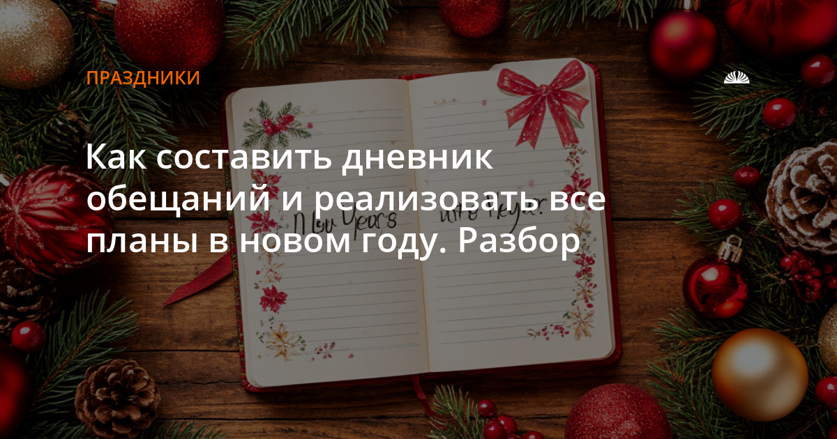 Дневник новогодних обещаний — список целей, планов, желаний. Его можно составить, чтобы продумать, чего хочется достичь в течение года, и разработать план их исполнения. Важно не только определить цели, но и продумать, как двигаться к ним.