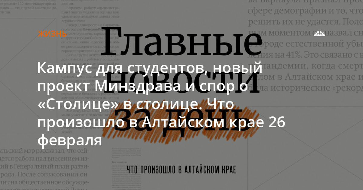 Кампус для студентов, новый проект Минздрава и спор о «Столице» в столице. Что произошло в Алтайском крае 26 февраля