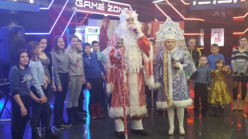 Перед началом сеанса юных зрителей развлекали Дед Мороз и Снегурочка, а Баба Яга показывала детям научные эксперименты. Ребята пели песни, водили хороводы и танцевали. После праздника они получили сладкие подарки от Деда Мороза, а в кинозале всех детей ждали попкорн и лимонад.
