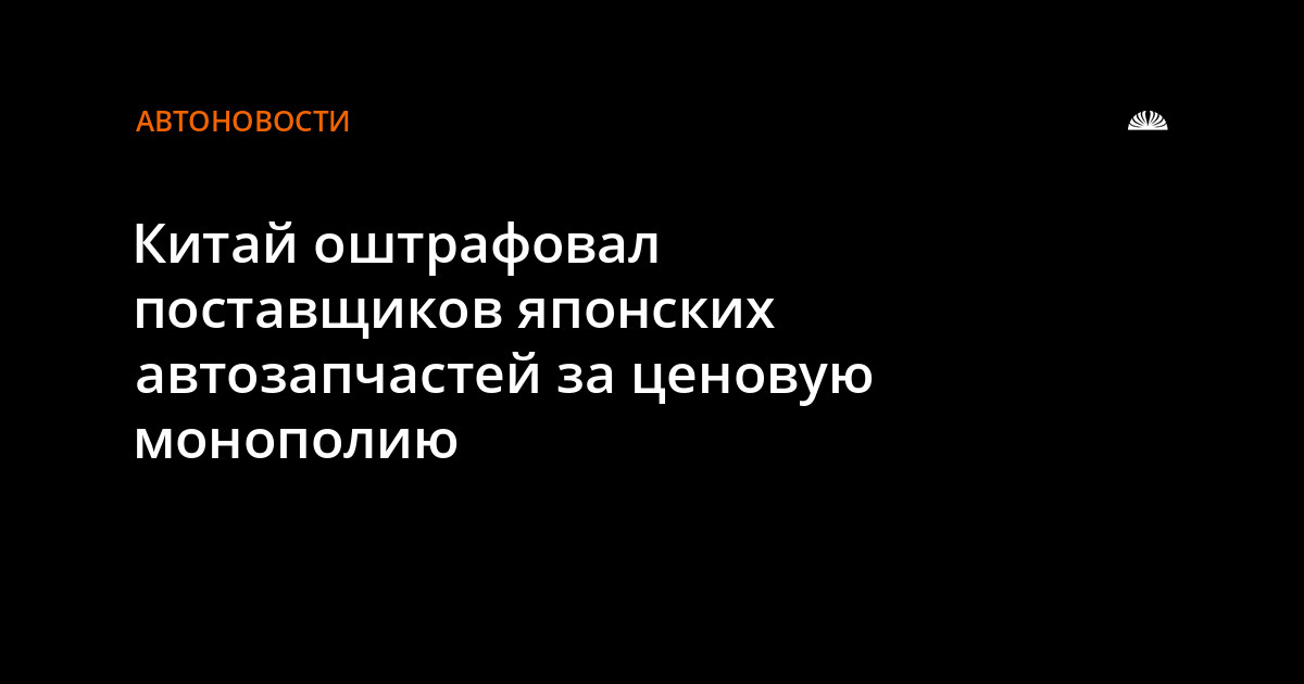 12 поставщиков японских автозапчастей оштрафованы на сумму 1,24 млрд юаней (около 201 млн долл США) в Китае за ценовую монополию. Данную информацию подтвердили 20 августа в службе ценового контроля страны.