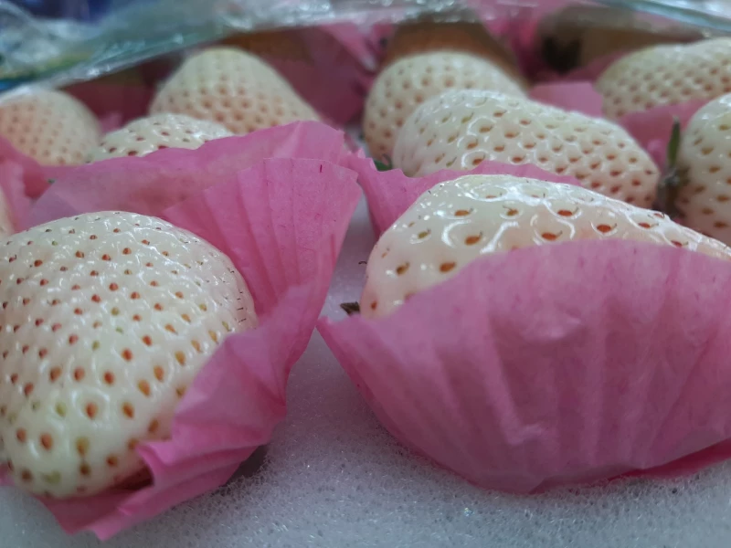 Появилась клубника. Причем, не только традиционного красного цвета. Но и белая, пахнет ароматно. Сорт называется «Белоснежка» — 1800 за килограмм. Причем, торговцы говорят, что она родом из Турции, другие «кивают» на Киргизию, как страну выращивания. Контейнер привычной. красной клубники, обойдется в 350 рублей. А стакан у продавца на улице — 200 рублей.