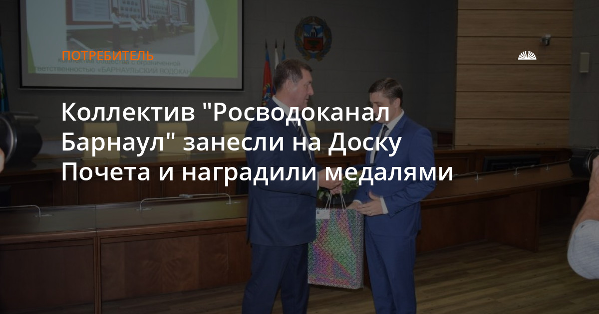 Накануне празднования Дня города в администрации города Барнаула прошла торжественная церемония чествования жителей и коллективов краевой столицы, которые внесли значительный вклад в ее развитие и процветание. Коллектив "Росводоканал Барнаул" был занесен на городскую Доску Почета "Слава и гордость Барнаула".