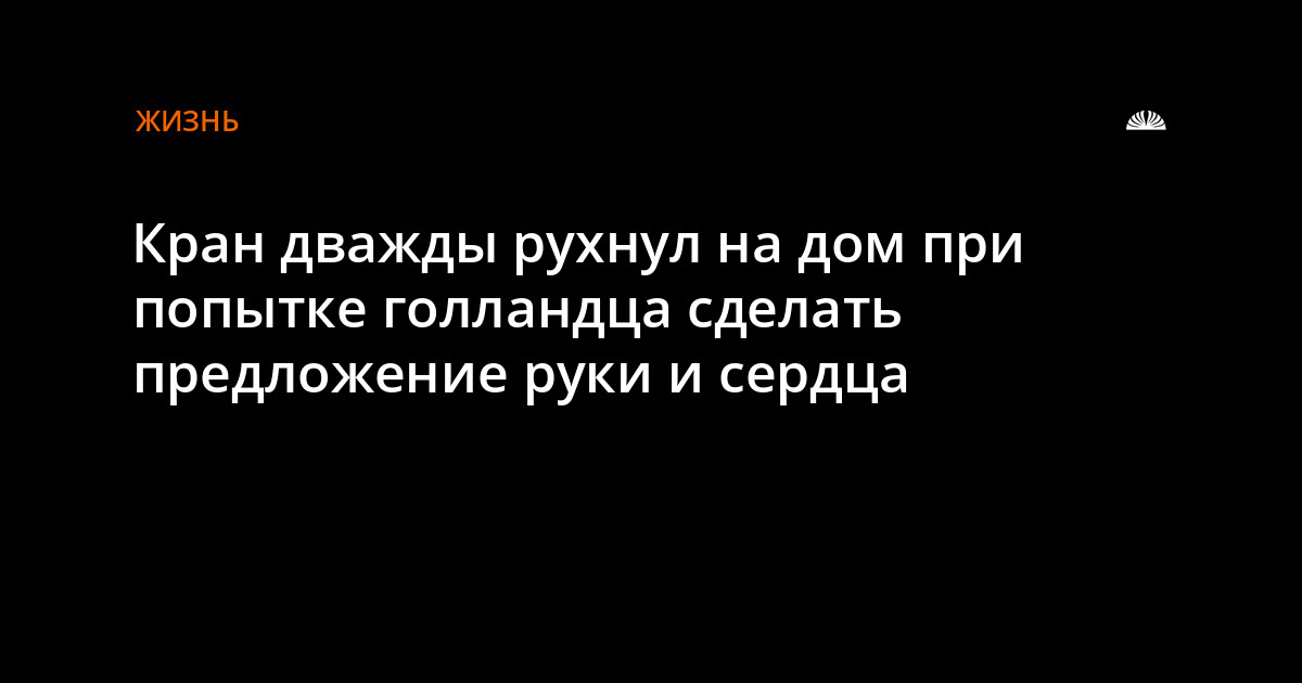 Попытка жителя Нидерландов сделать своей девушке предложение руки и сердца в оригинальной форме завершилась тем, что подъемный кран дважды рухнул на жилой дом, сообщает Reuters.