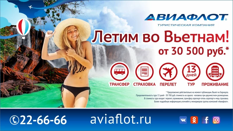 Рассчитать или оформить пакетный тур с перелетом, проживанием и питанием можно в компании "Авиафлот" 24 часа в сутки и 7 дней в неделю, просто позвонив по номеру (3852)22-66-66. А также на сайте компании "Авиафлот" есть удобная система поиска путевок, которая помогает оперативно получить варианты туров, исходя из запросов клиента. Для этого необходимо отправить заявку, после которой сотрудники группы компаний "Авиафлот" подберут несколько вариантов поездки, исходя из пожеланий клиента.