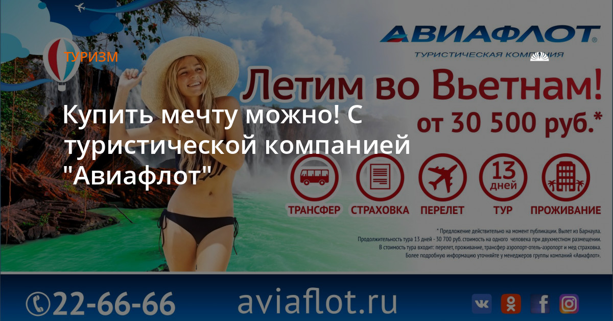 Доверьте организацию своей поездки проверенной и надежной туристической компании Авиафлот и вы станете нашим постоянным клиентом!
