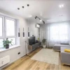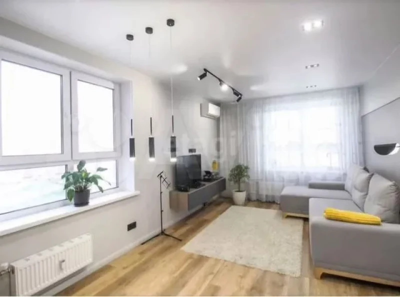 Особенностью жилья является дизайнерский ремонт. В квартире кухня оборудована современной техникой, включая индукционную плиту с четырьмя конфорками, духовой шкаф, вытяжку, посудомоечную машину, микроволновую печь и холодильник. Санузел оформлен керамогранитом в теплых пастельных тонах, в нем есть стирально‑сушильная машина и водонагреватель.
